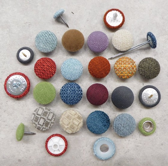 Polsterknöpfe in verschiedenen Ausführungen, Größen und Bezugsstoffen. Bezug auch mit Ihren Stoff möglich.